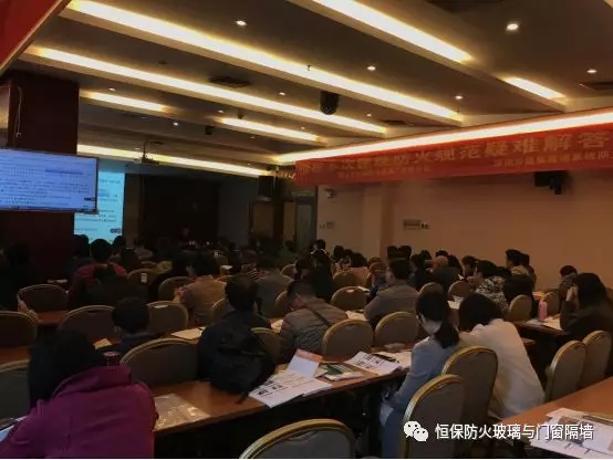 本次國家性防火規范高級培訓邀請了多方有實力,國內外知名的行業專家、業界人士以及專家個人參與!而鶴山市恒保防火玻璃廠有限公司作為防火玻璃國標參編企業、防火玻璃專家、防火門窗專家,亦受邀出席了本次活動,并且在現場分享了恒保公司21年來專業研究與生產防火玻璃、防火玻璃門窗系統等的經驗,為與會人員提供了珍貴的價值。
